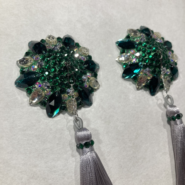 Tummanvihreät/hopeiset tasselit