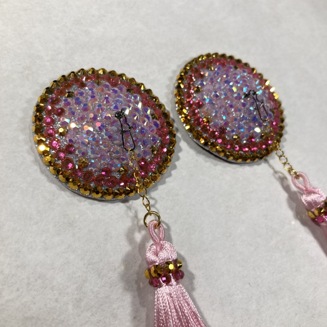 Vaaleanpunaiset tasselit pinkeillä ja kultaisilla yksityiskohdilla